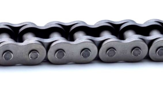 伝動用ローラチェーンは、内リンクとそれを連結する外リンクにより構成されています。内リンクは、自由に回転するローラをはめた 2 個のブシュを内プレートに圧入して結合したものです。そして、この内リンクを外プレートとピンで交互に結合したものが伝動用ローラチェーンです。