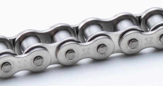 ピン、ブシュ、ローラに析出硬化系ステンレスを採用したステンスチェーンです。標準ステンレスチェーンでは許容張力が不足する場合にご採用ください。