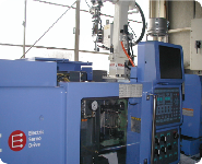 射出成形機にペレット材を入れて金型にて成形する。均一肉の比較的薄肉 4mm 以下が適当。