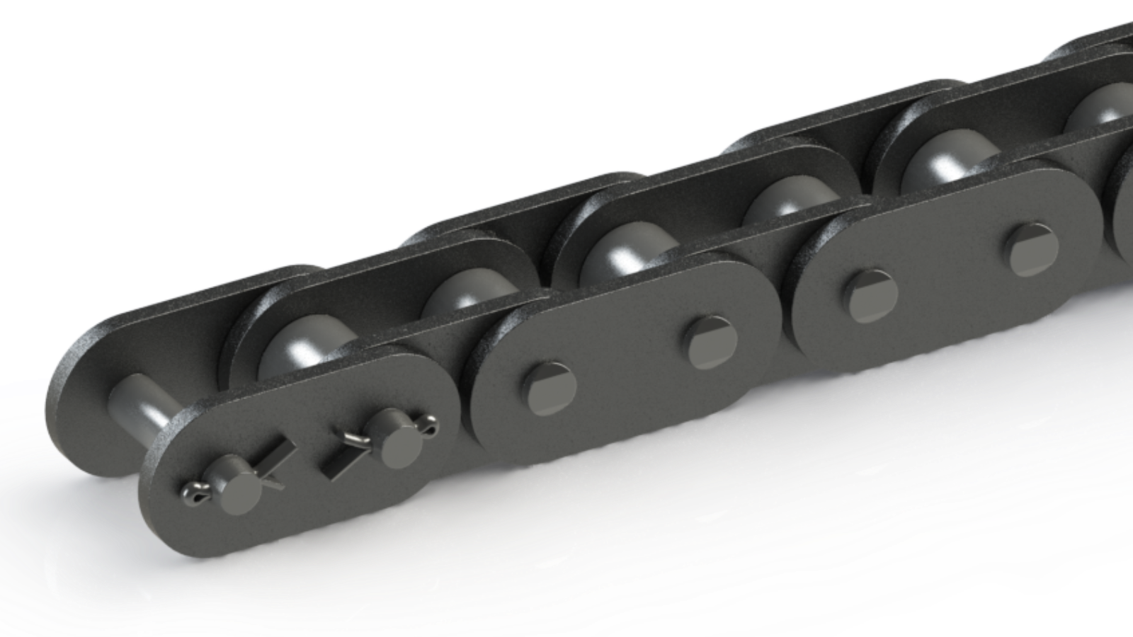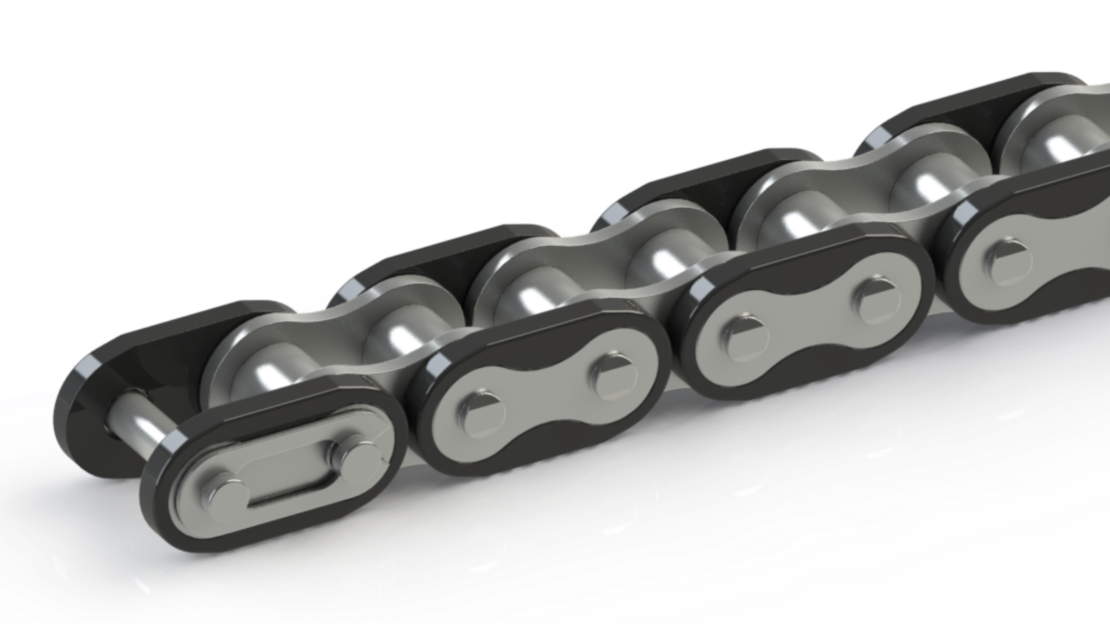 直載せしても製品を傷つけにくい搬送用ローラチェーン。