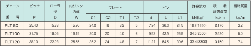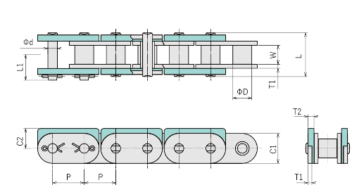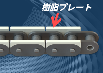 外リンクと内リンクの隙間に樹脂製のプラプレートを挟んだチェーンです。プラプレートの上面はフラットになっており、搬送物を傷つけにくい仕様となっております。プラリンクチェーン[PLK]と比較して許容負荷が大きいので重量物の搬送にも適しています。スプロケットはローラチェーン用標準スプロケットが使用できます。