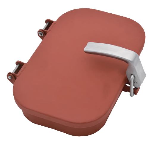 粉体などの搬送ラインで搬送物が点検口内に溜まりにくい構造としたタイプです。
