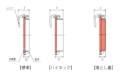 保守・点検する装置の大きさに合わせたサイズと使用環境に適合させた点検口です。点検時に工具などの落下を防止するネット付きもラインナップしています。