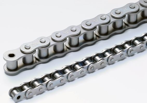 ローラチェーンは、内リンクとそれを連結する外リンクにより構成されています。内リンクは、自由に回転するローラをはめた 2 個のブシュを内プレートに圧入して結合したものです。そして、この内リンクを外プレートとピンで交互に結合したものがローラチェーンです。