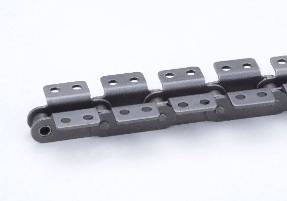 軽量品の運搬には標準コンベヤチェーン (FM・FE 形 ) では、サイズが大きすぎたり、精度の点で使用できない場合があります。このような場合の軽量品の運搬には、小形コンベヤチェーンを使用すれば最適です。また輸送物の形状やサイズにより種々のアタッチメントが考えられますが、最も一般的に使用されるタイプのダブルピッチチェーンやアタッチメント付きローラチェーンには標準アタッチメント付きチェーンを用意しています。