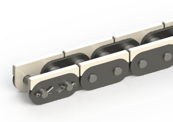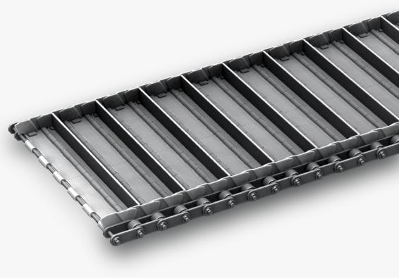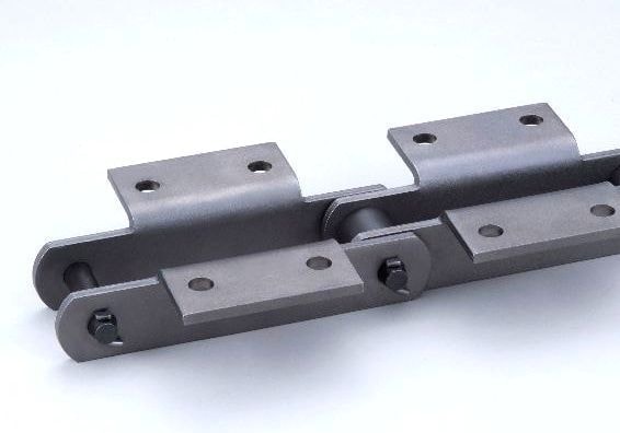 OCM エプロンチェーンは工作機械から排出される切削屑や鋳造品、自動車部品の搬送やごみ処理施設など、幅広い分野で使用されています。エプロンチェーンの両サイドには OCM 汎用ダブルピッチチェーンや腐食雰囲気でも使用できるステンレス製も製作可能です。コンベヤチェーンを使用し、また接続しているバーにも特殊熱処理を施していますので、十分な引張強度を確保しています。