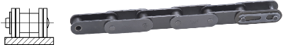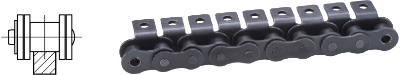 | 9.トップローラチェーン チェーンピッチの中間上部にローラを付けたチェーンです。