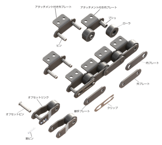 プレートは、チェーン伝動中にかかる張力の引張り部材となります。
